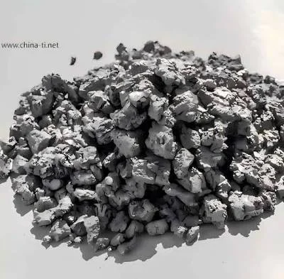 Fragmented titanium ‘sponge’, raw metal before processing into superalloy.
